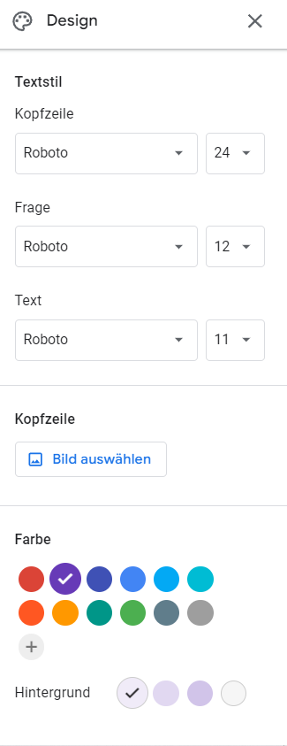 Google Formulare bieten eine Reihe von Anpassungsmöglichkeiten, einschließlich der Aktualisierung von Farbpaletten und dem Hochladen von benutzerdefinierten Bildern. Allerdings ist Google Formulare auf die blockartige und einfache Ästhetik beschränkt, die Sie mit allen Google Lösungen erhalten, und ist nicht ideal für die Erstellung eines individuell gestalteten Formulars.