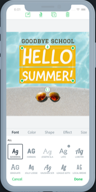 Adobe Express ist mehr als nur eine Fotobearbeitungs-App. Sie ermöglicht es Ihnen, Ihre Fotos und Videos hochzuladen und sie entsprechend zu gestalten. Die App bietet coole Effekte und Animationen, mit denen Sie Ihre Inhalte besonders hervorheben können. Außerdem bietet sie exklusive, professionell gestaltete Filter, Vorlagen und Symbole, mit denen Sie ganz einfach Grafiken zu jedem Foto hinzufügen können.