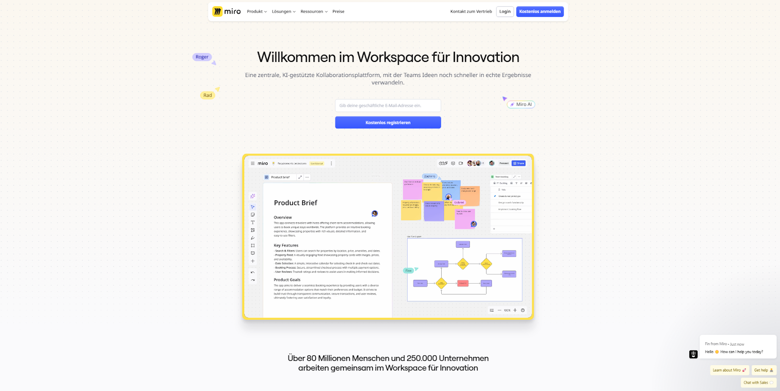 - Vorteile: ideal für Brainstorming-Sitzungen und gemeinsame Planung; Anzeige von Miro-Boards in Chats und Meetings