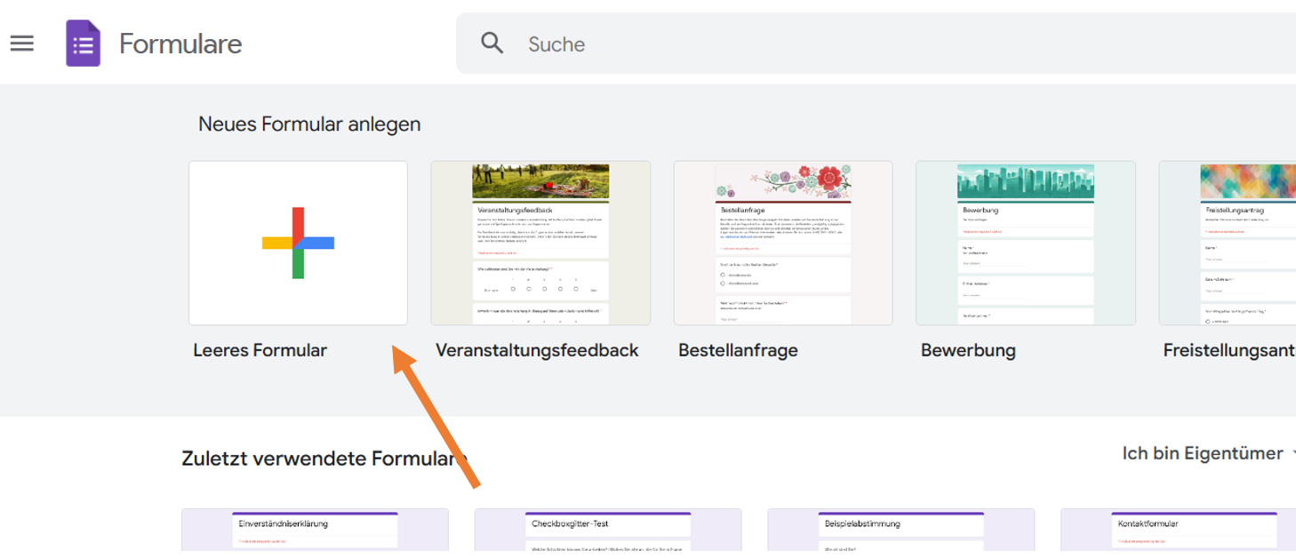 - Erstellen Sie zunächst ein neues leeres Google-Formular, indem Sie auf das Pluszeichen unter Neues Formular anlegen klicken.