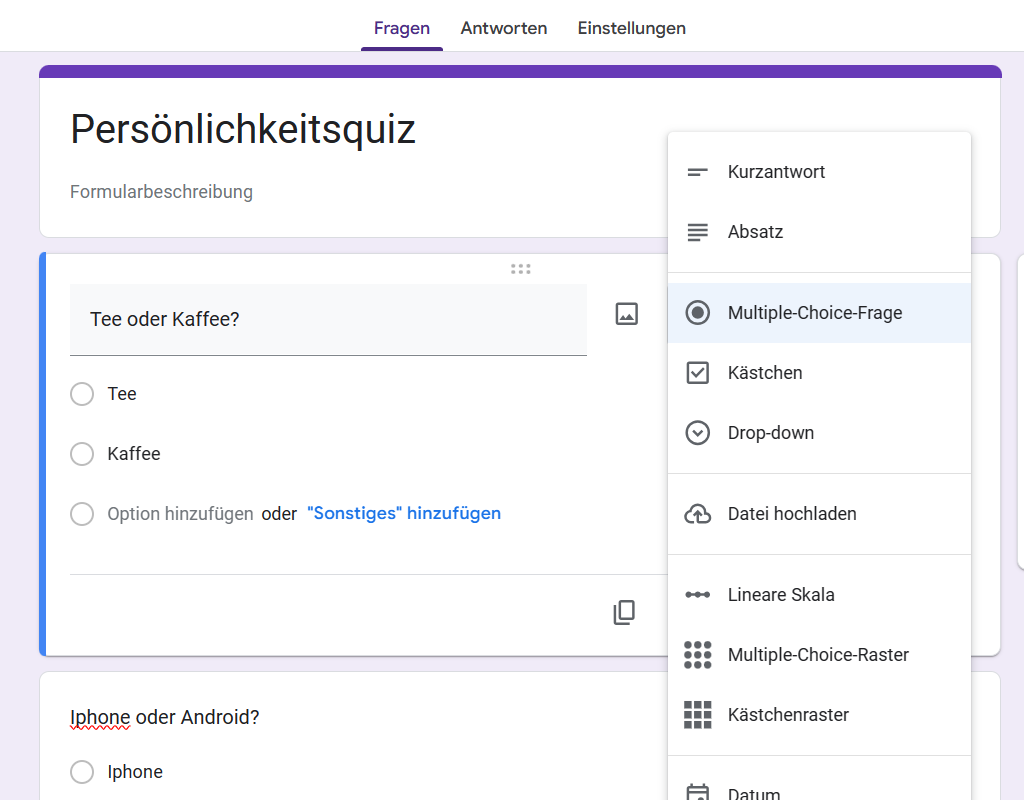 So erstellen Sie Persönlichkeitsquizze mit Google Formulare