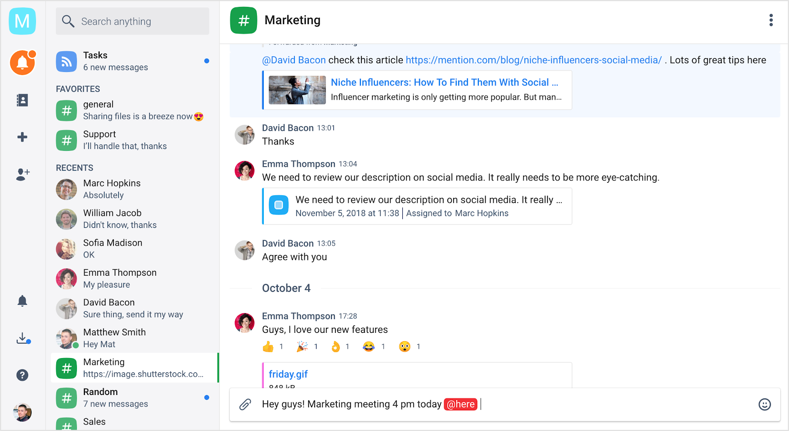 Was auch immer der Grund sein mag, es gibt eine Vielzahl von Tools für die Unternehmenskommunikation, von denen Ihr Team profitieren kann. Einige sind kostenlos und bieten mehr Optionen als der Basisplan von Slack. Einige beschränken Ihr Nachrichtenlimit nicht. Einige erlauben es Ihnen, sie auf Ihrem eigenen Server zu hosten.