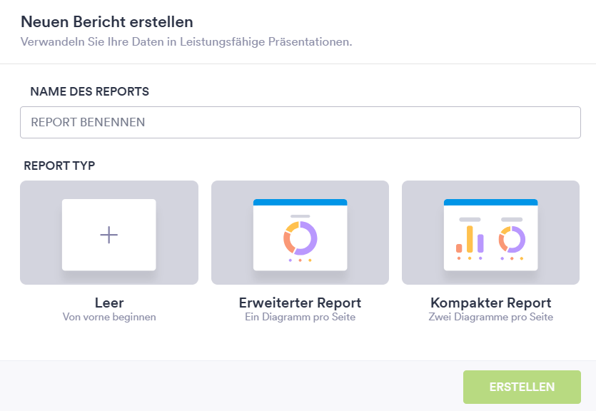 Sie können automatisch einen professionell aussehenden Bericht erstellen – entweder mit einem oder zwei Diagrammen pro Seite – oder mit einem leeren Blatt beginnen.