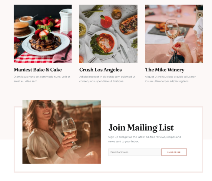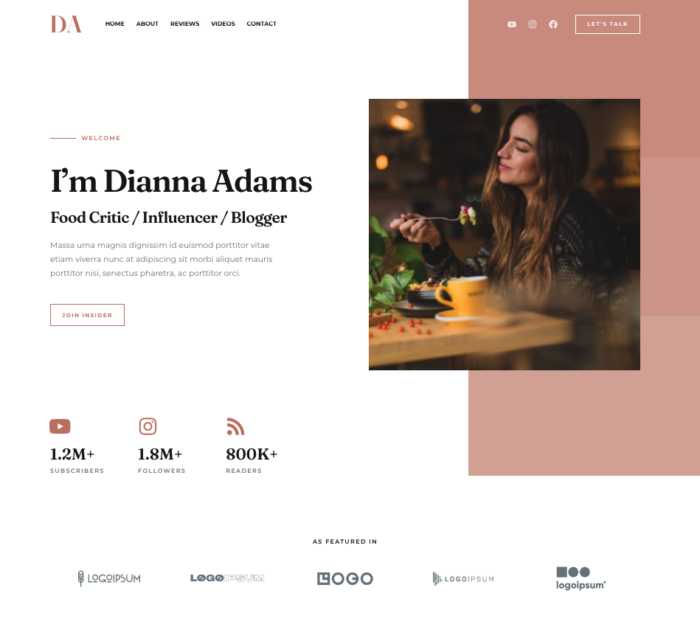 Einige der vorgefertigten Vorlagen von Astra unterstützen speziell die Leadgenerierung für bestimmte Geschäftsarten, wie diese für einen Food-Blogger.