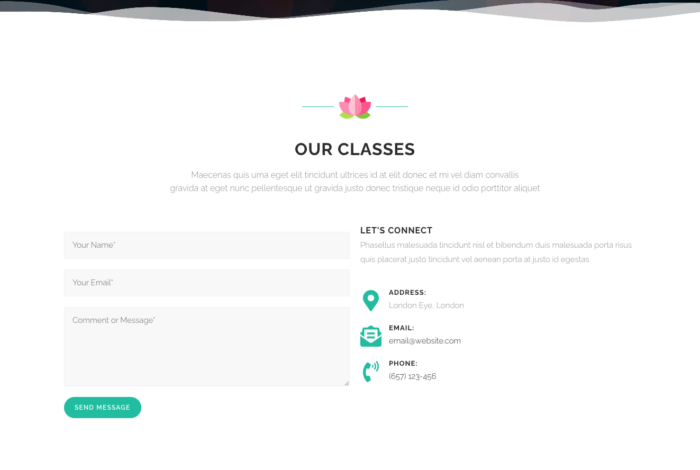 Die “Kontakt”-Seite zeigt die Flexibilität dieses Themes bei der Integration mit anderen Anbietern von einbettbaren Formularen.