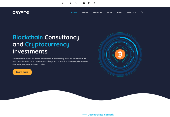 Dieses Beispiel für einen Anbieter von Kryptowährungen zeigt, wie Sie das Theme nutzen können, um CTA-Schaltflächen in Ihre Website einzubinden.