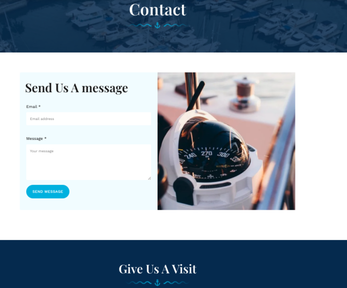 Dieses Beispiel zeigt, wie ein Bootsverleih mit einer traditionellen “Kontakt”-Seite, die von Neve unterstützt wird, Leads erfasst.