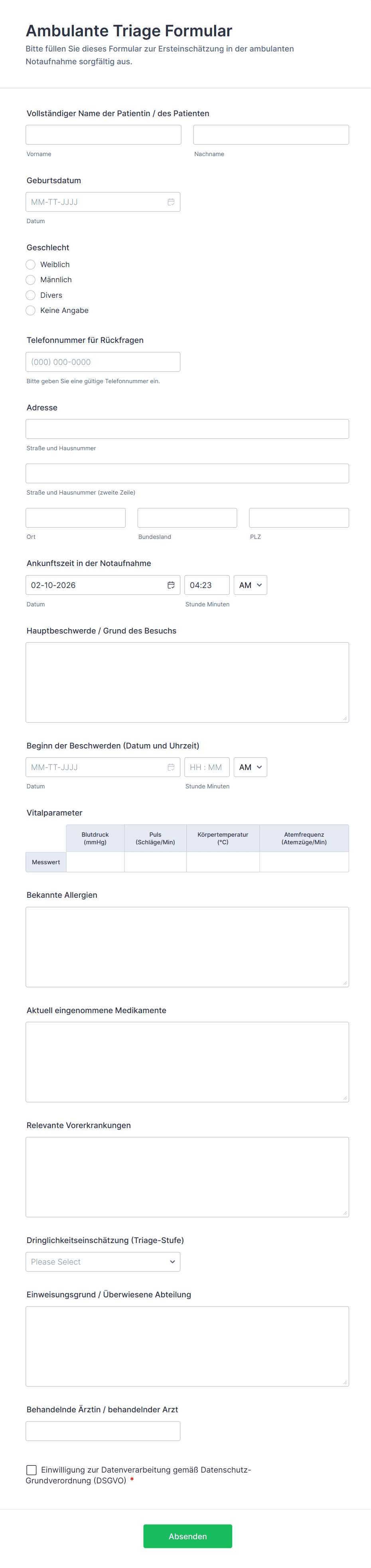 - Aufnahmeformulare im Gesundheitswesen können Felder für Krankengeschichte, Allergien und Versicherung erfordern.
