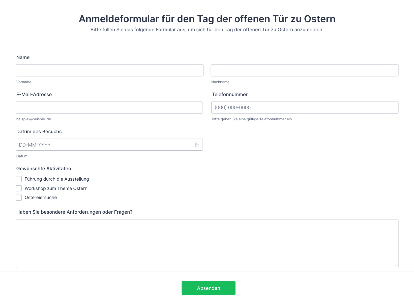 Registrierungsformulare optimieren den Prozess der Erfassung von Teilnehmerinformationen, reduzieren manuelle Fehler und unterstützen Organisatoren bei der effizienten Verwaltung und Kommunikation mit den angemeldeten Teilnehmern.