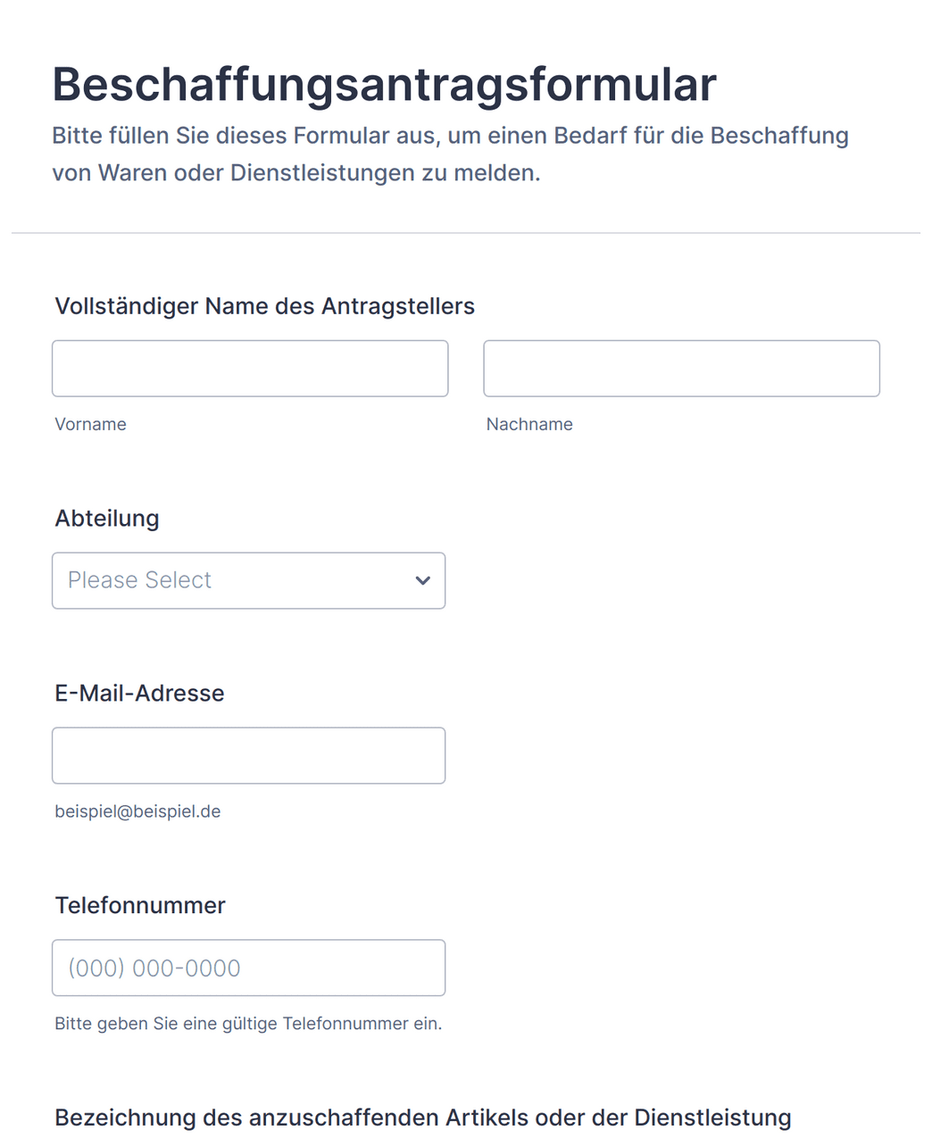Durch diese Schritte können Sie ein solides Bestellanfrageformular erstellen, das die Beschaffung vereinfacht, die Compliance sicherstellt und den Einkaufsprozess für Ihr Unternehmen beschleunigt.