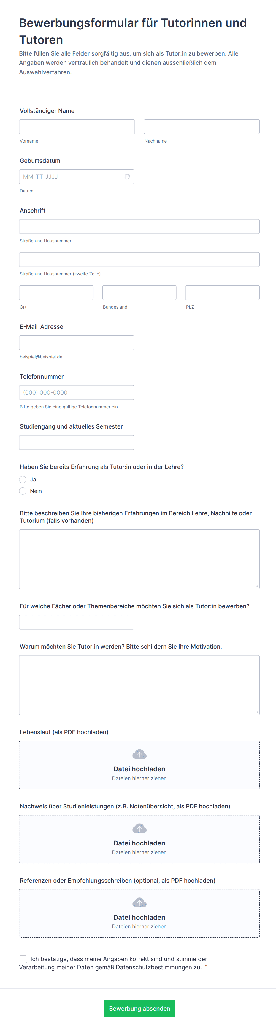 2) Was sollte in einem Bewerbungsformular für Tutorinnen und Tutoren enthalten sein?