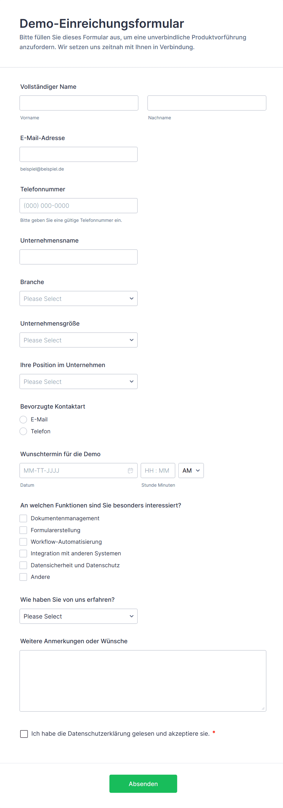 - Demo- oder Beratungsbuchungsformulare für SaaS- oder B2B-Unternehmen.