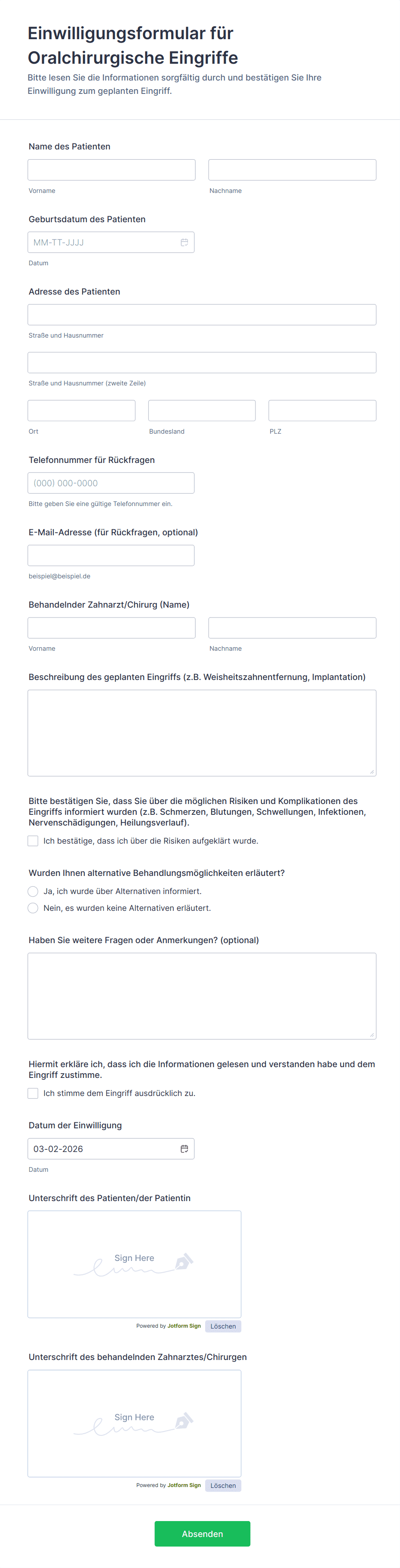 • Für medizinische oder Forschungsformulare zusätzliche Felder für Notfallkontakte, Krankengeschichte oder spezifische rechtliche Hinweise hinzufügen.