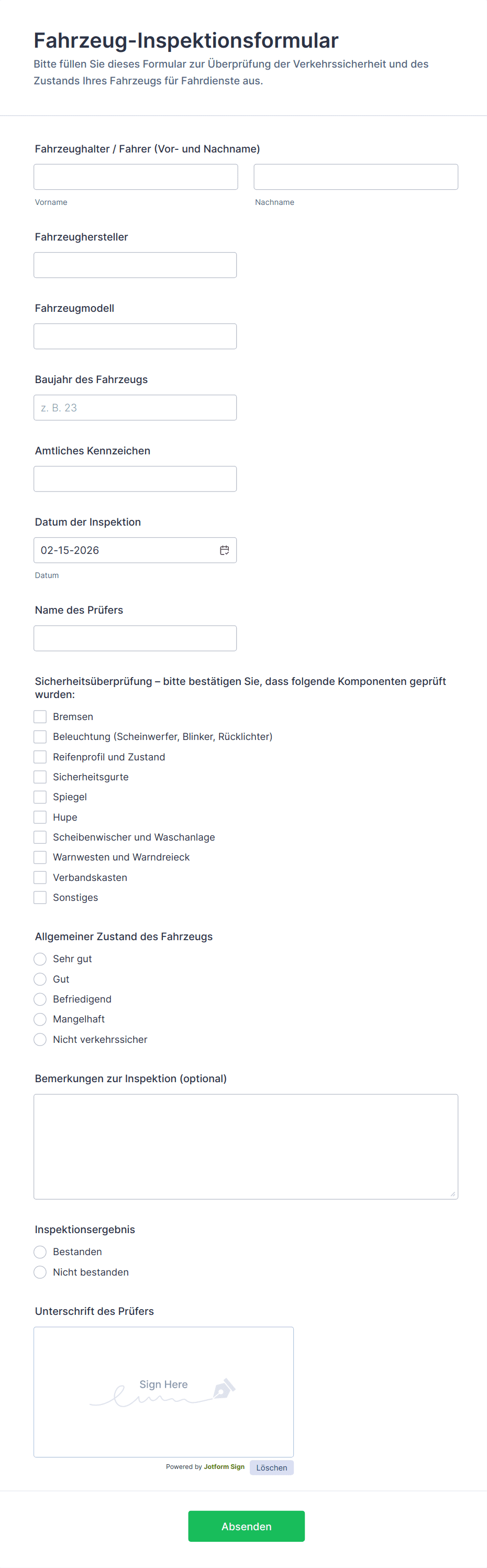 Fahrzeuginspektionsformulare