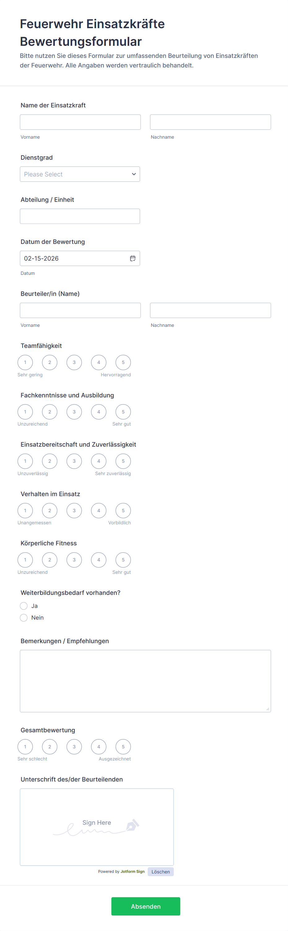 2) Was sollte in einem Feuerwehr-Einsatzkräfte-Bewertungsformular enthalten sein?