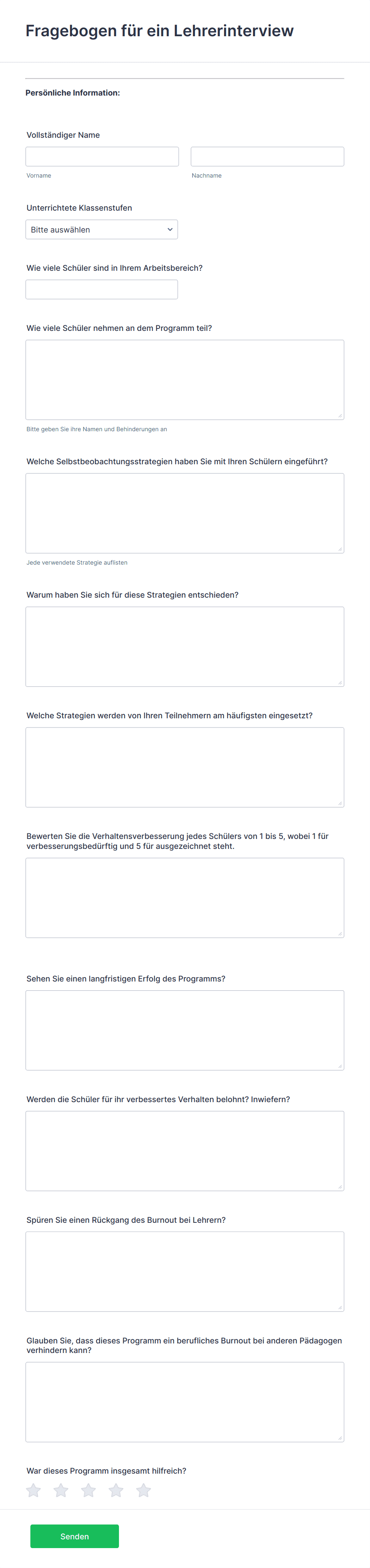 Fragebogenvorlagen sind vorgefertigte Formulare, mit denen sich strukturierte Informationen von Befragten für verschiedene Zwecke, wie beispielsweise Umfragen, Feedback, Bewertungen und Evaluierungen, erfassen lassen. Diese Vorlagen können an verschiedene Branchen und Ziele angepasst werden, z. B. für Umfragen zur Kundenzufriedenheit, zur Mitarbeiterbindung, für akademische Forschung, Gesundheitsuntersuchungen oder Marktforschungsstudien. Durch die Bereitstellung eines einheitlichen Rahmens für die Datenerfassung helfen Fragebogenvorlagen Unternehmen und Einzelpersonen, den Prozess der Erfassung, Analyse und Umsetzung wertvoller Erkenntnisse zu optimieren.