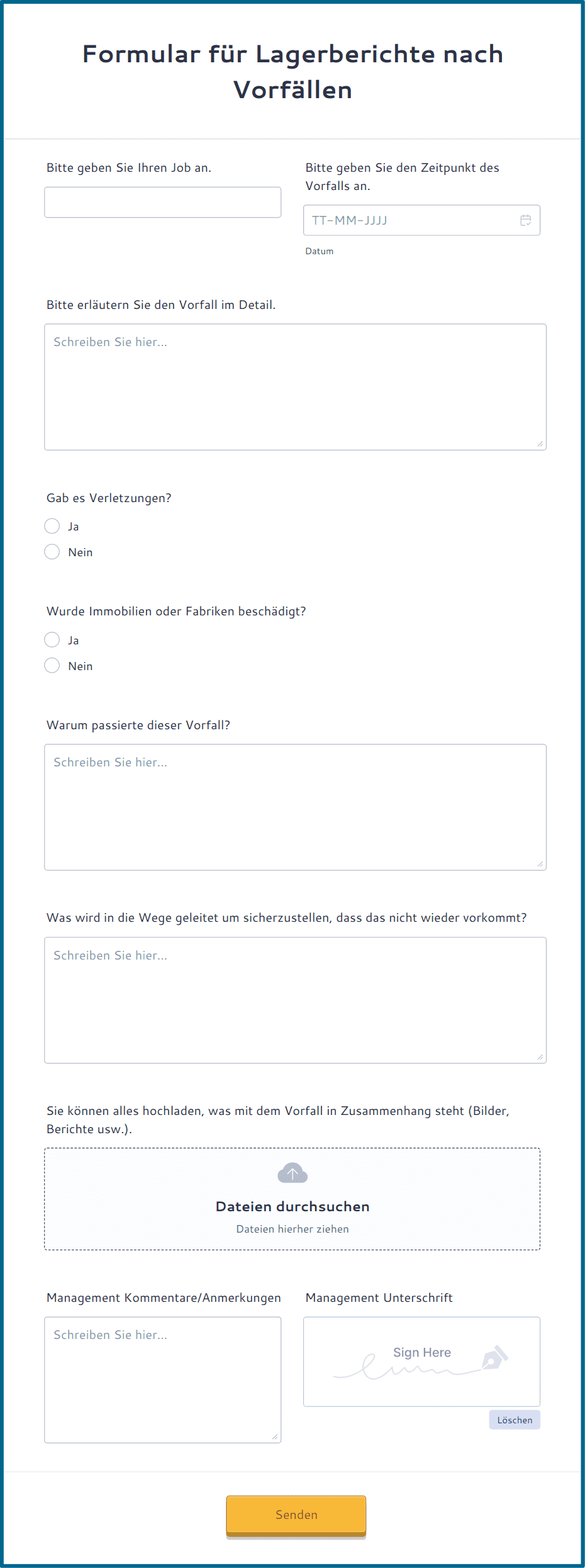 • Vorfallsmeldungen oder Unfallberichte für Arbeitssicherheit und Compliance