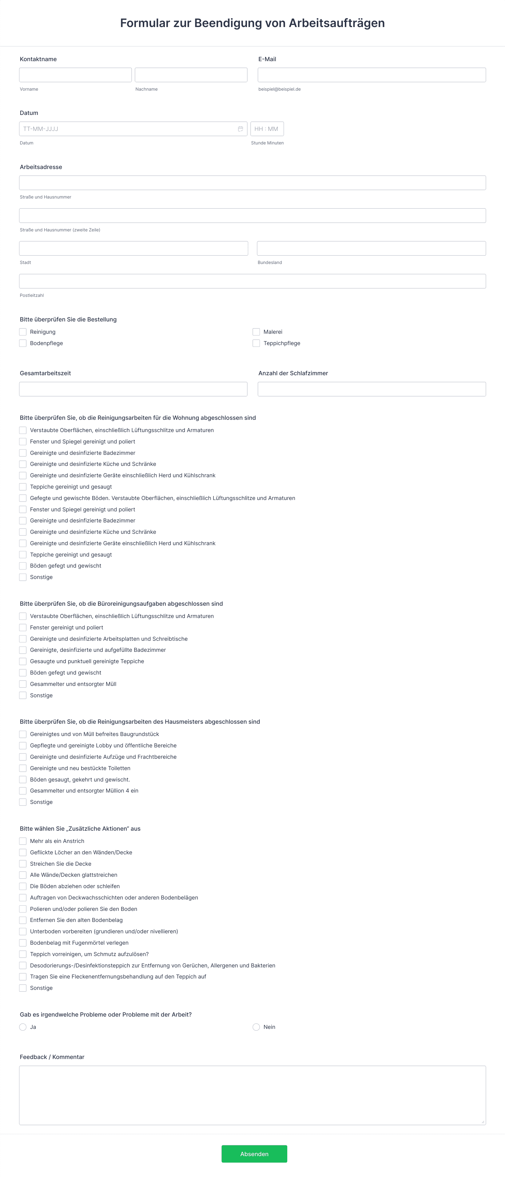 Eine Dienstleistungsformularvorlage ist ein vorgefertigtes Online-Formular, das von Unternehmen und Fachleuten verwendet wird, um Informationen zu Dienstleistungsbuchungen, Anfragen, Feedback oder Zahlungen von Kunden zu erfassen.