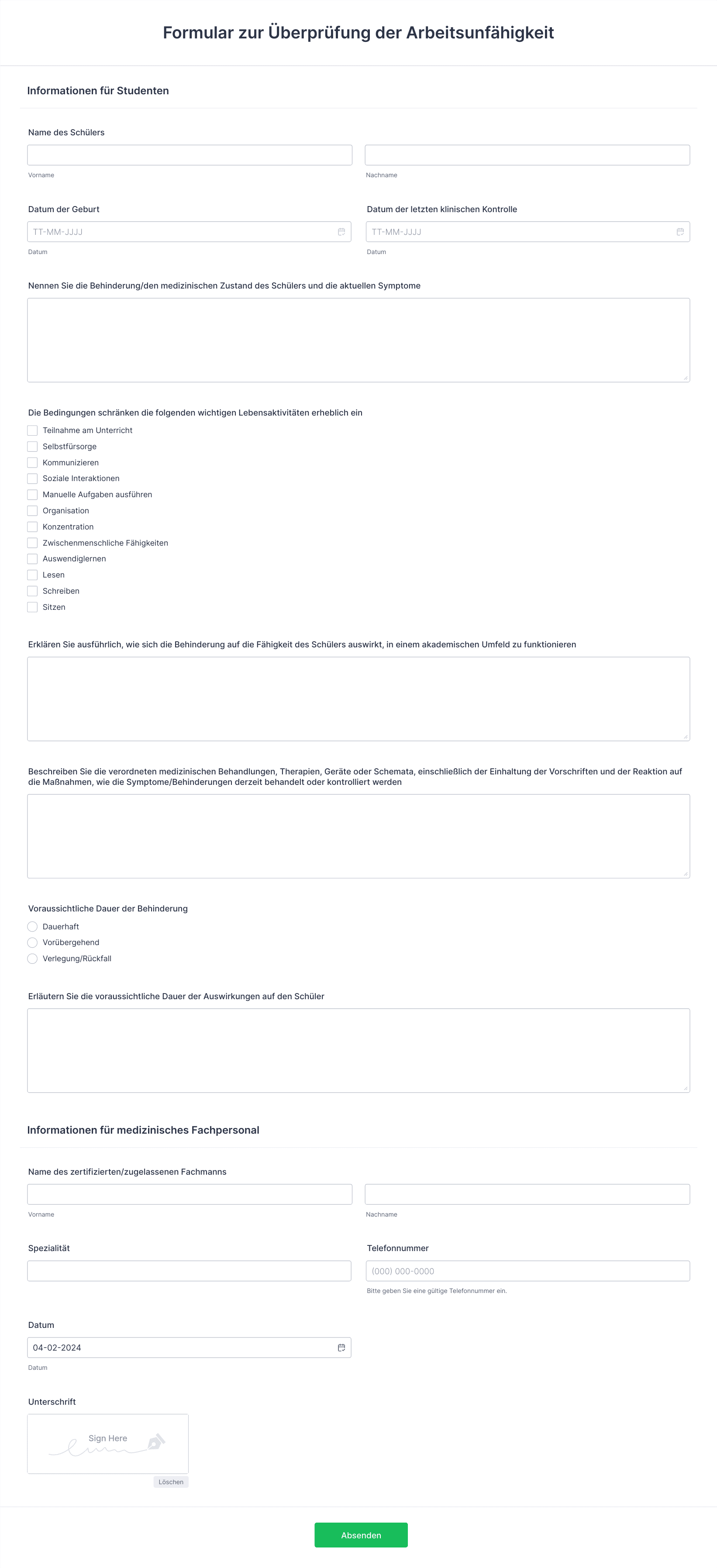 Bildungsformulare vereinfachen Verwaltungsaufgaben, reduzieren Schreibarbeit und gewährleisten eine genaue Datenerfassung. Sie verbessern auch die Kommunikation zwischen Lehrkräften, Schülern und Eltern und machen den Schulbetrieb effizienter.
