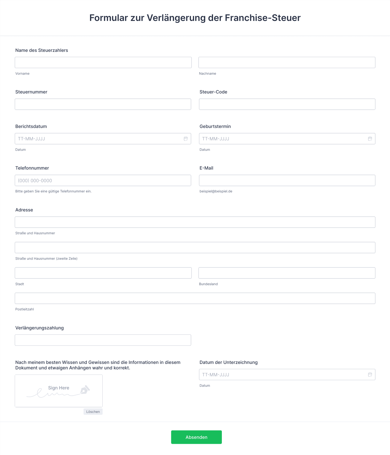- Jeder Use Case erfordert möglicherweise unterschiedliche Felder, rechtliche Formulierungen und digitale Signaturoptionen.