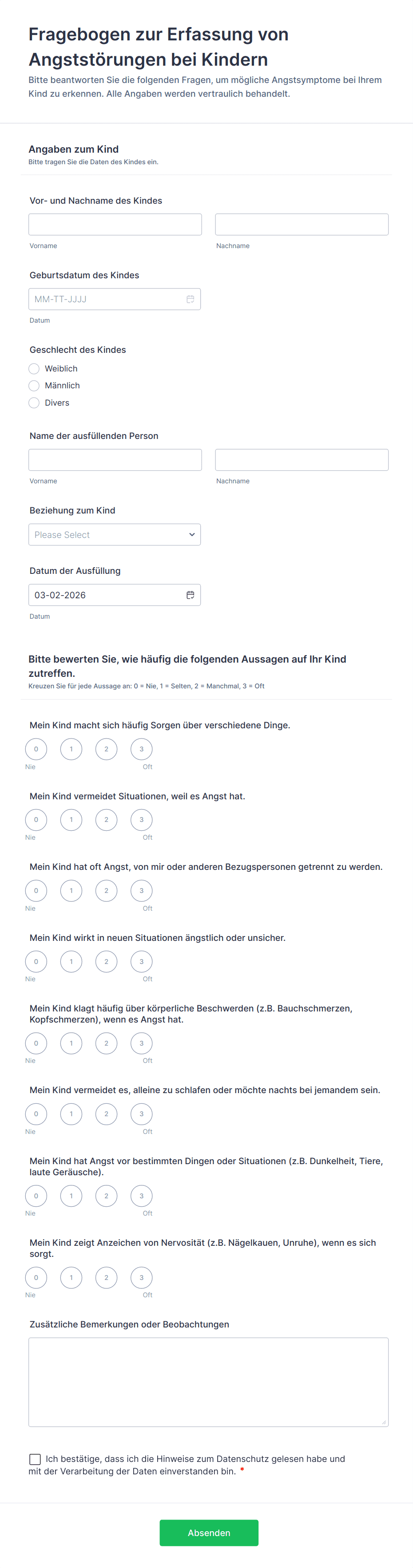 • Psychische Gesundheitsuntersuchungen: Verwenden Sie validierte Skalen (z. B. PHQ-9, GAD-7) und eine sensible Fragelogik.