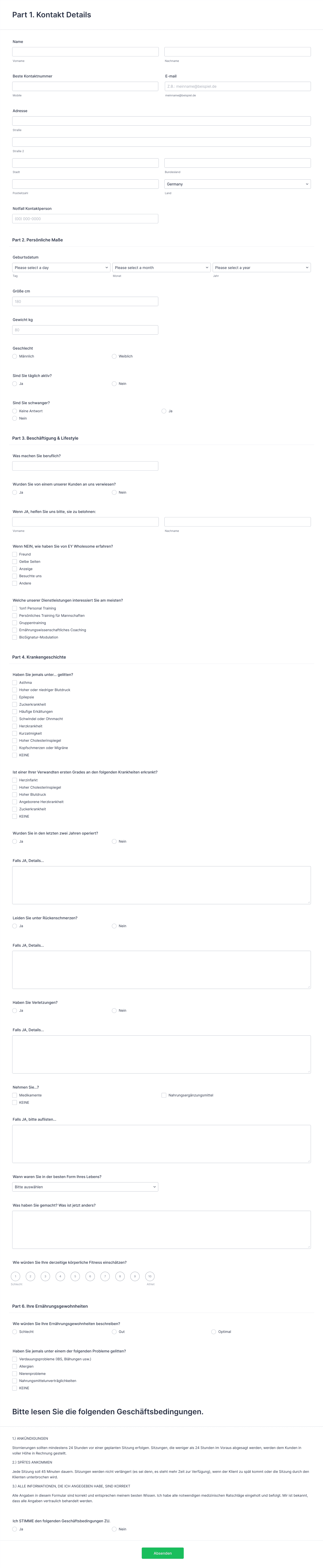 Über Gesundheitsformulare
