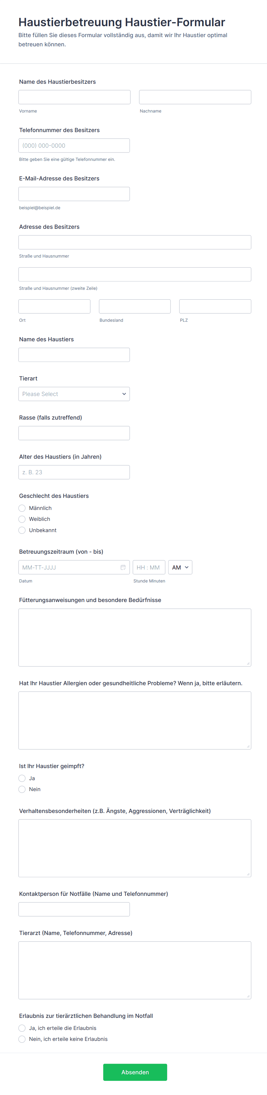 Zu den üblichen Feldern gehören Name, Kontaktdaten, Datum und Uhrzeit der Buchung, Auswahl der Dienstleistung oder Ressource, Anzahl der Teilnehmer und gegebenenfalls Zahlungsinformationen.
