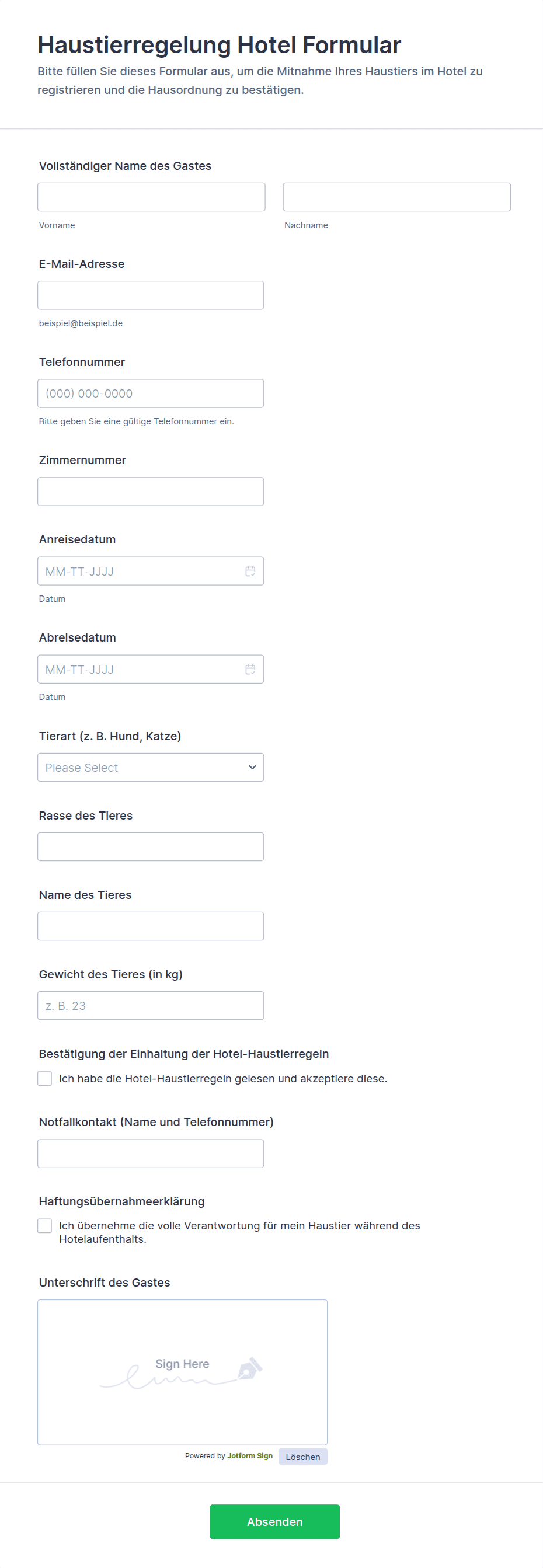 - Feedback- und Erfahrungsformulare im Gastgewerbe fokussieren sich auf Bewertungen der Servicequalität, Rückmeldungen zur Interaktion mit dem Personal und offene Kommentare der Gäste.