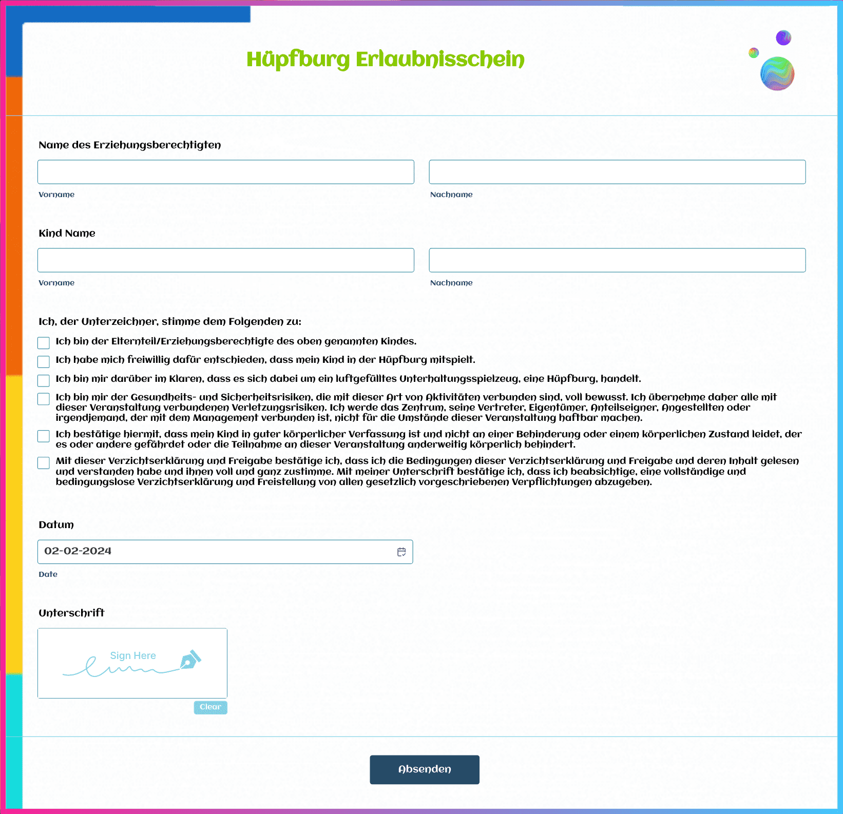 Zustimmungsformular Für Aktivitäten