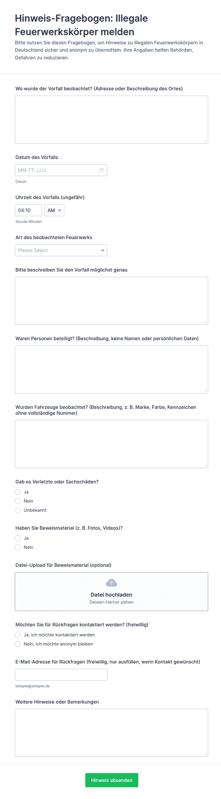 - Inhalt und Felder unterscheiden sich je nach Zielsetzung: So kann beispielsweise ein Fragebogen zur Gesundheitsvorsorge Angaben zur Krankengeschichte und Symptom-Checklisten enthalten, während ein Feedback Formular sich auf Zufriedenheitsbewertungen und offene Kommentare konzentriert.