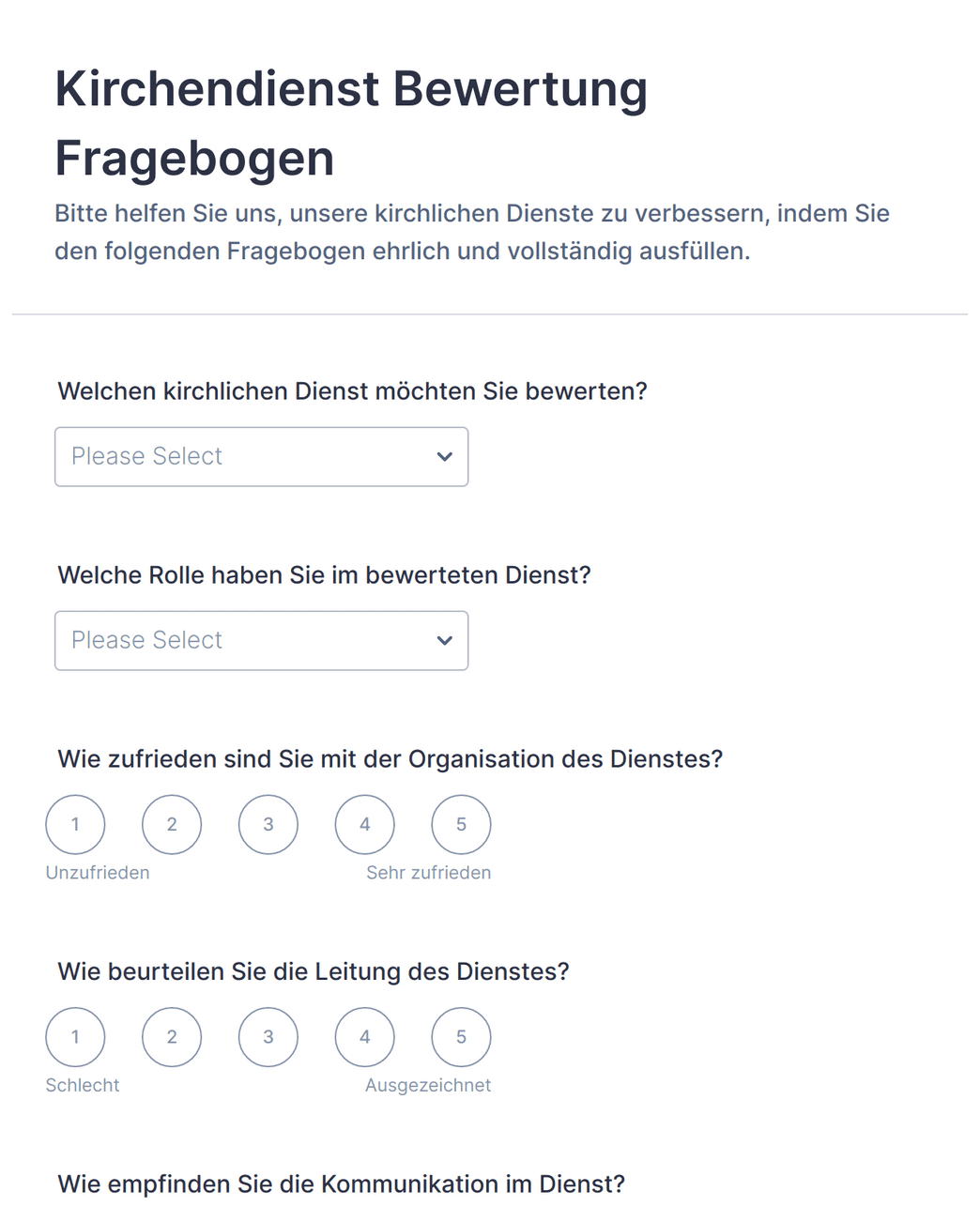 Church Evaluation Form In Deutsch