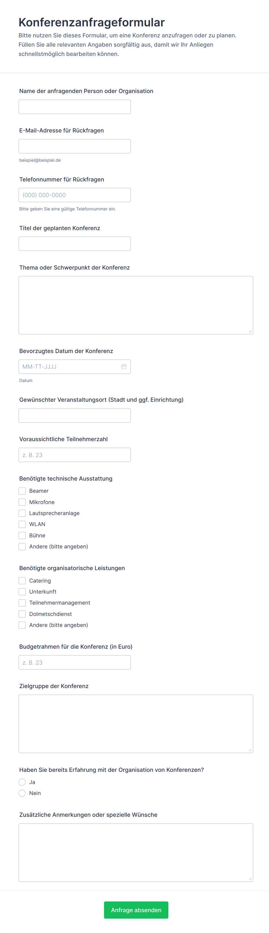 Konferenzanfrageformular