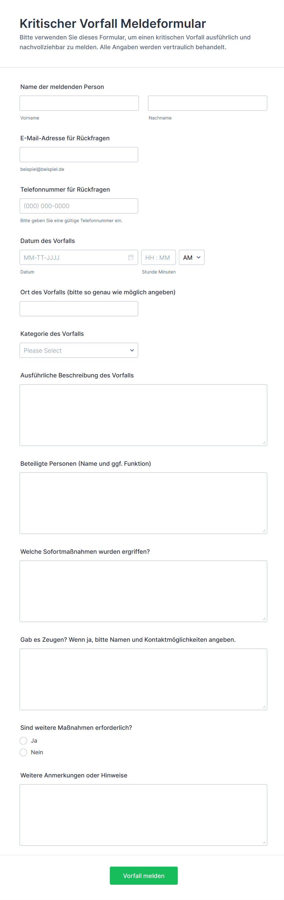 Allgemeines Vorfallmeldeformular