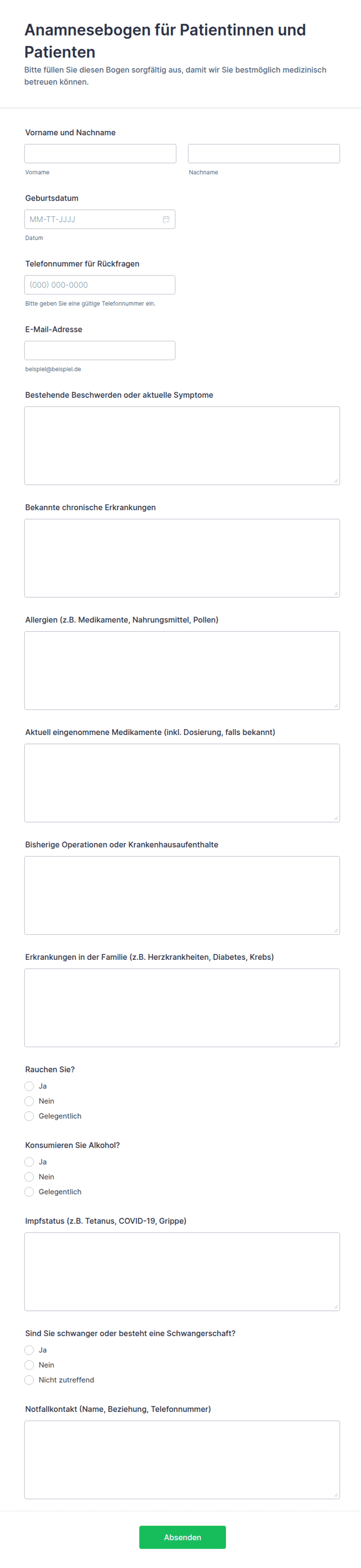 - Für Gesundheitsrisikobewertungen sollten Checkboxen oder Multiple-Choice-Fragen zu Lebensstil, Familienvorgeschichte und spezifischen Risikofaktoren enthalten sein.