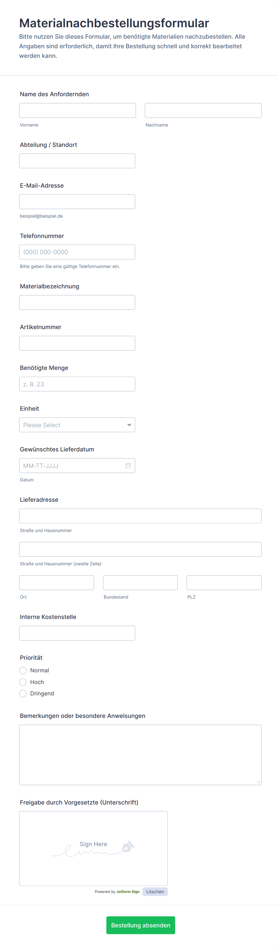So erstellen Sie ein Materialbestellformular