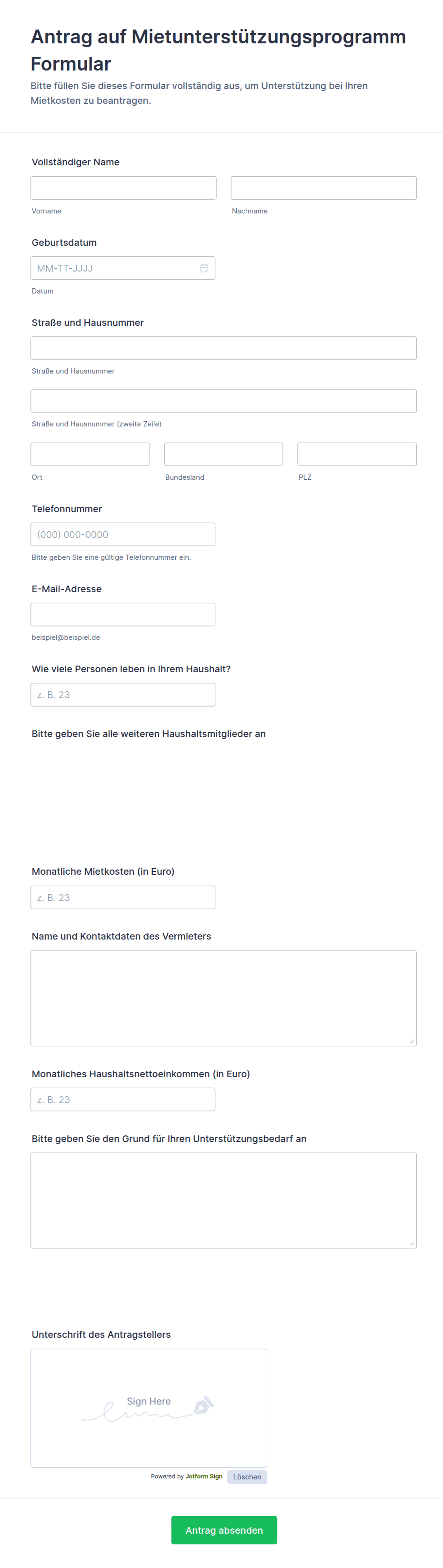 - Sozialhilfe- oder Zuschussformulare: Enthalten häufig Fragen zur Anspruchsberechtigung, Begleitdokumente und Einverständniserklärungen.