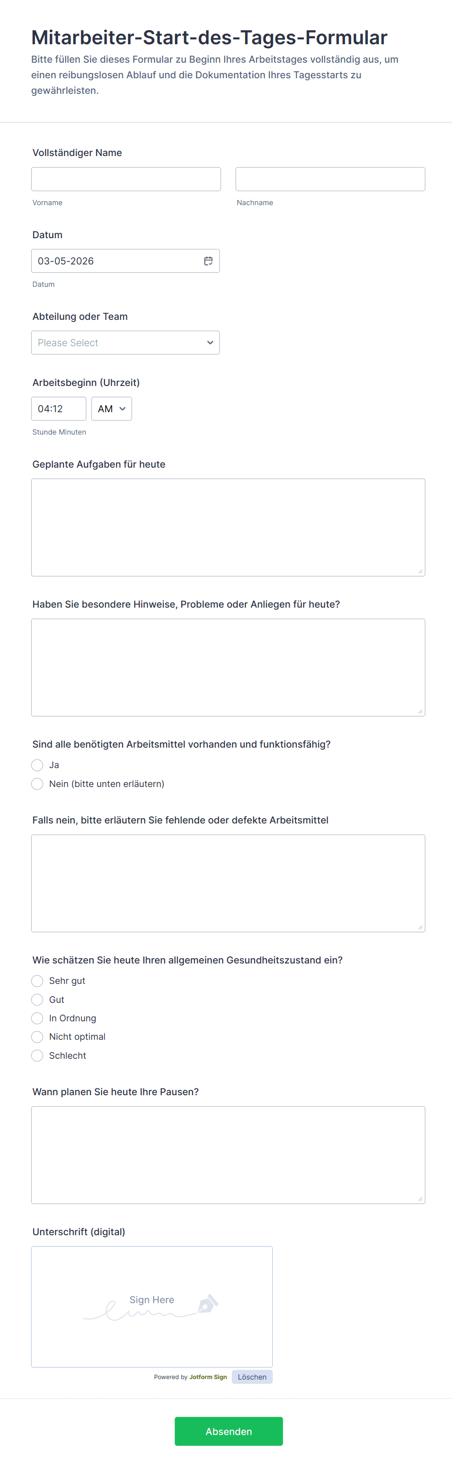 Wenn Sie diese Schritte befolgen, können Sie ein Check-in Formular erstellen, das Eingangsprozesse optimiert, die Sicherheit erhöht und sowohl Mitarbeitern als auch Besuchern eine positive Erfahrung bietet. Die Flexibilität von Jotform stellt sicher, dass Ihr Formular an jedes Check-in-Szenario angepasst werden kann, gängige Herausforderungen löst und die betriebliche Effizienz verbessert.