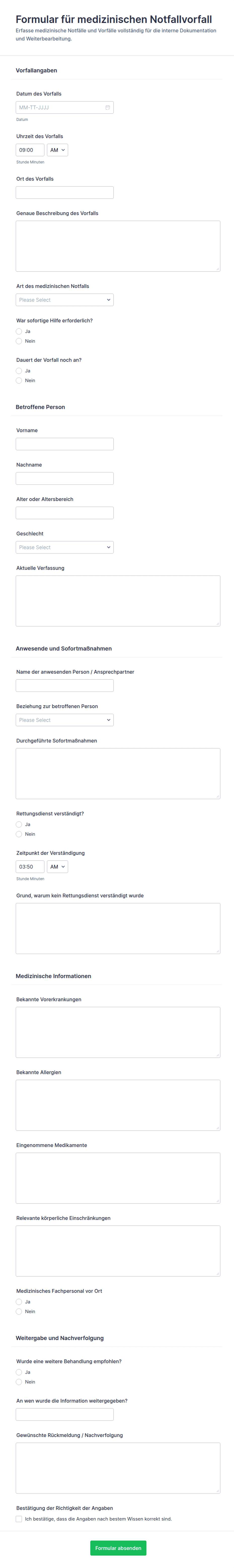 Notfallmeldung Für Medizinische Vorfälle Formular