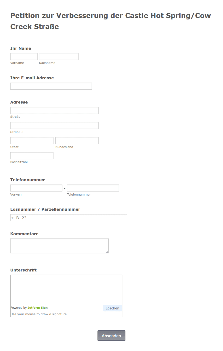 Diese Online-Petition ist ein einfaches aber hilfreiches Formular, um online Stimmen für Ihre Petition zu sammeln. Sie können das Formular als Link teilen oder in Ihre Website einbauen. Es ist außerdem auch für mobile Geräte optimiert. Mit unserem Form-Builder können Sie das Formular ganz einfach mit ein paar Klicks an Ihre Bedürfnisse anpassen.