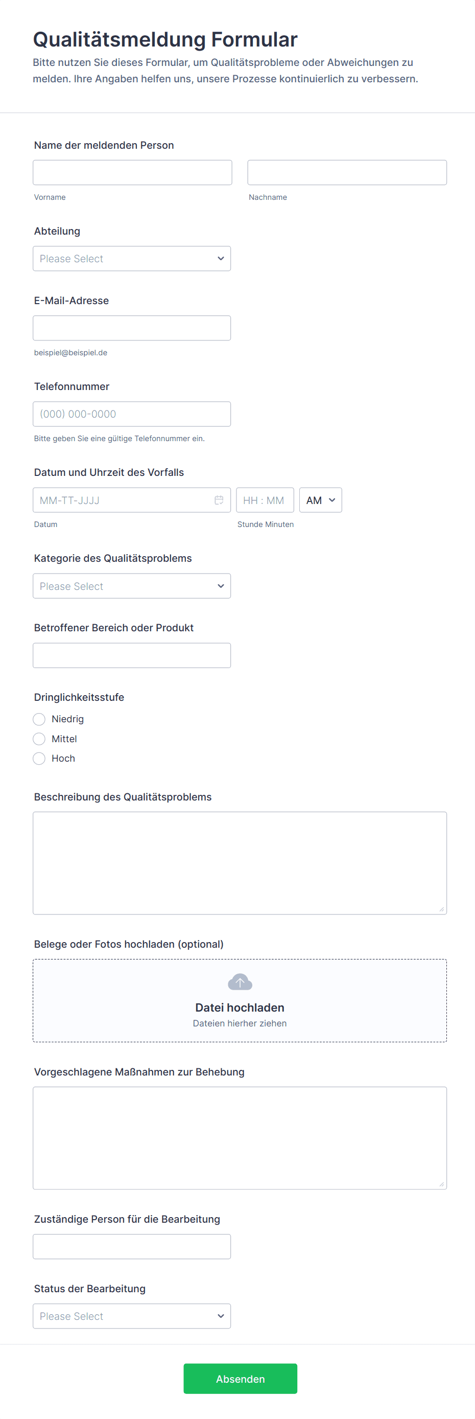 - Datei-Upload-Felder für Belegdokumente (nützlich bei Audits oder Lieferantenbewertungen).