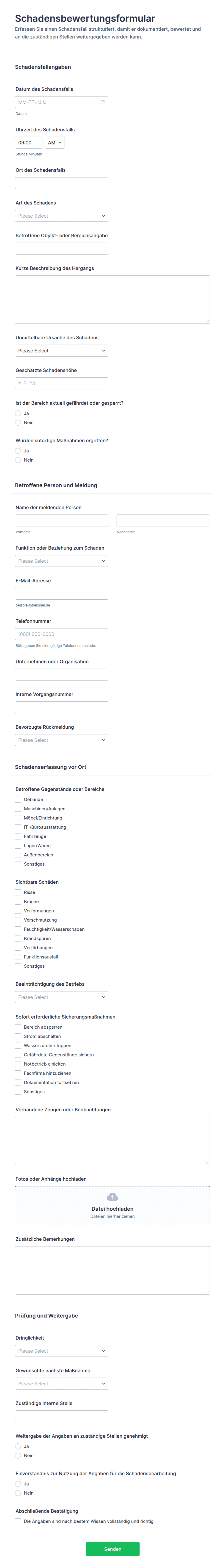 Schadensbericht Erfassungsformular