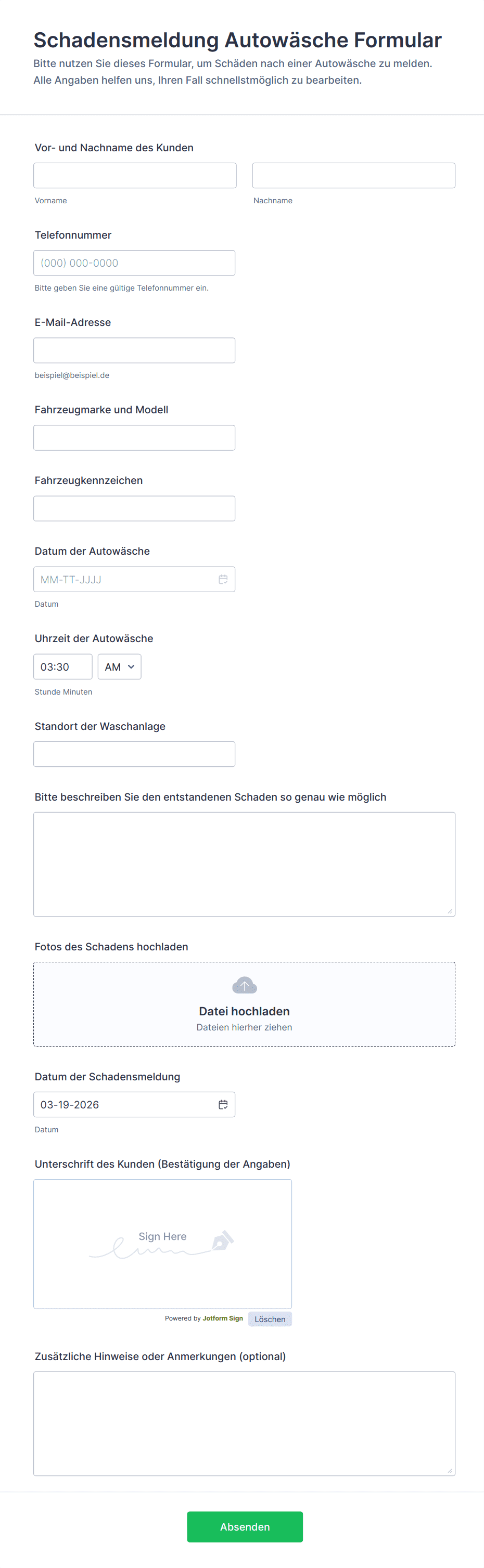 - Datei-Upload-Felder für Begleitdokumente (z. B. Quittungen, Fotos, Berichte)
