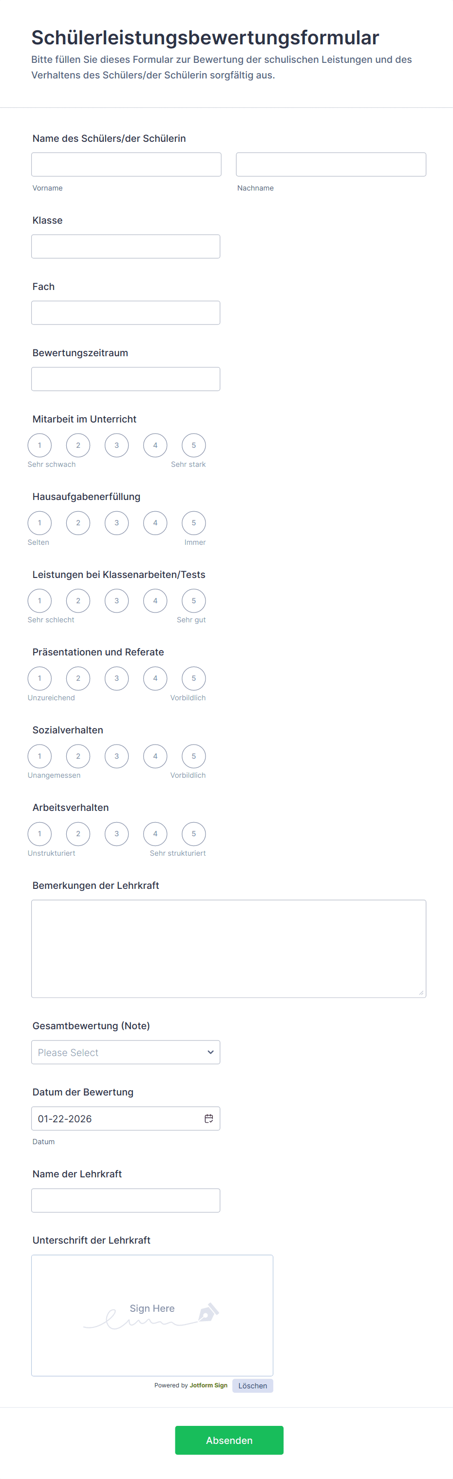 Creating a student assessment form with Jotform helps educators standardize evaluation while keeping assessment records organized and easy to review.