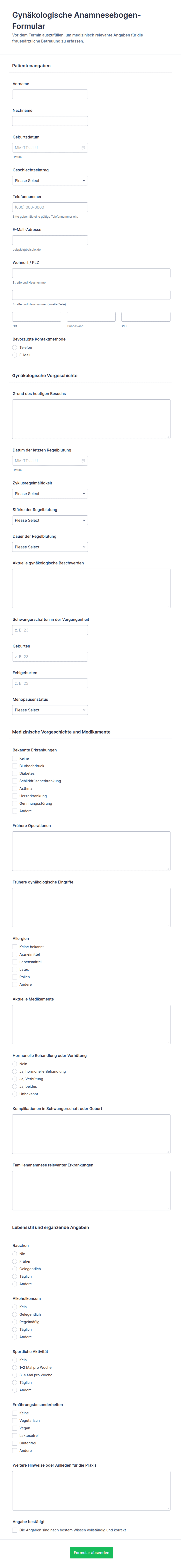- Für Gesundheitsrisikobewertungen sollten Checkboxen oder Multiple-Choice-Fragen zu Lebensstil, Familienvorgeschichte und spezifischen Risikofaktoren enthalten sein.