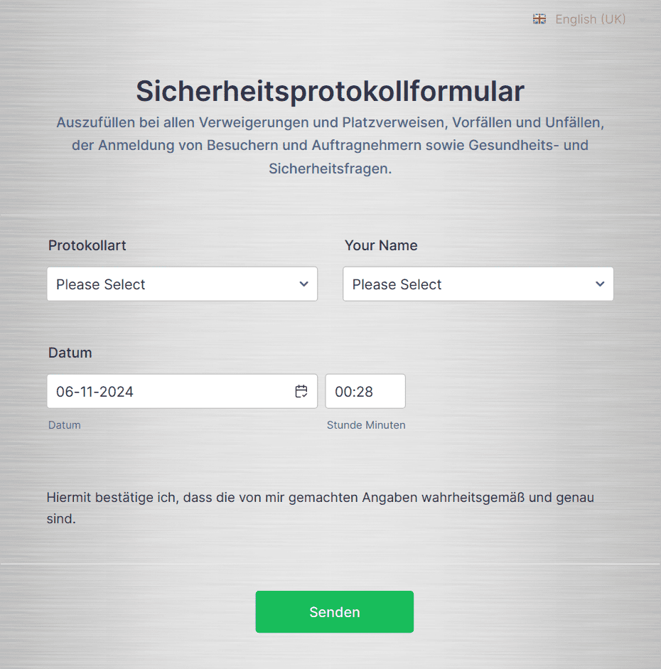 - Vorfallsmeldungen oder Unfallberichte für Arbeitssicherheit und Compliance
