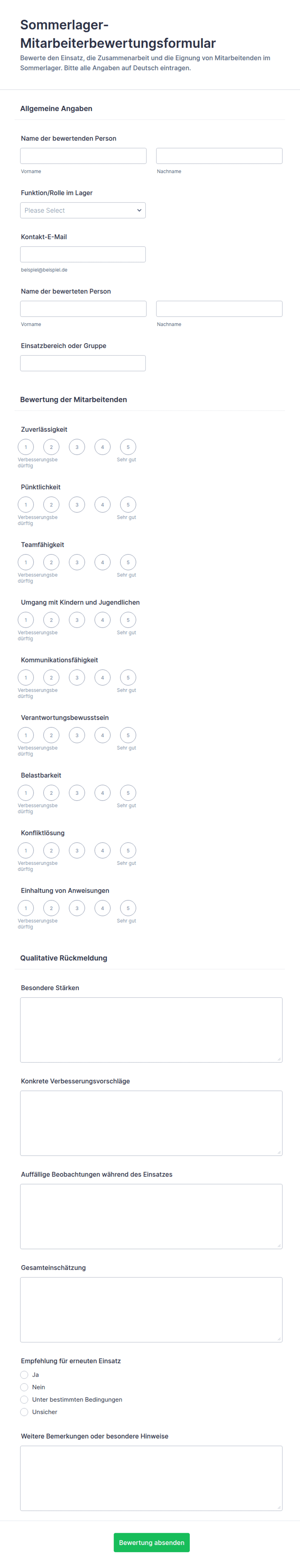Bewertungsformular Für Kindermädchen