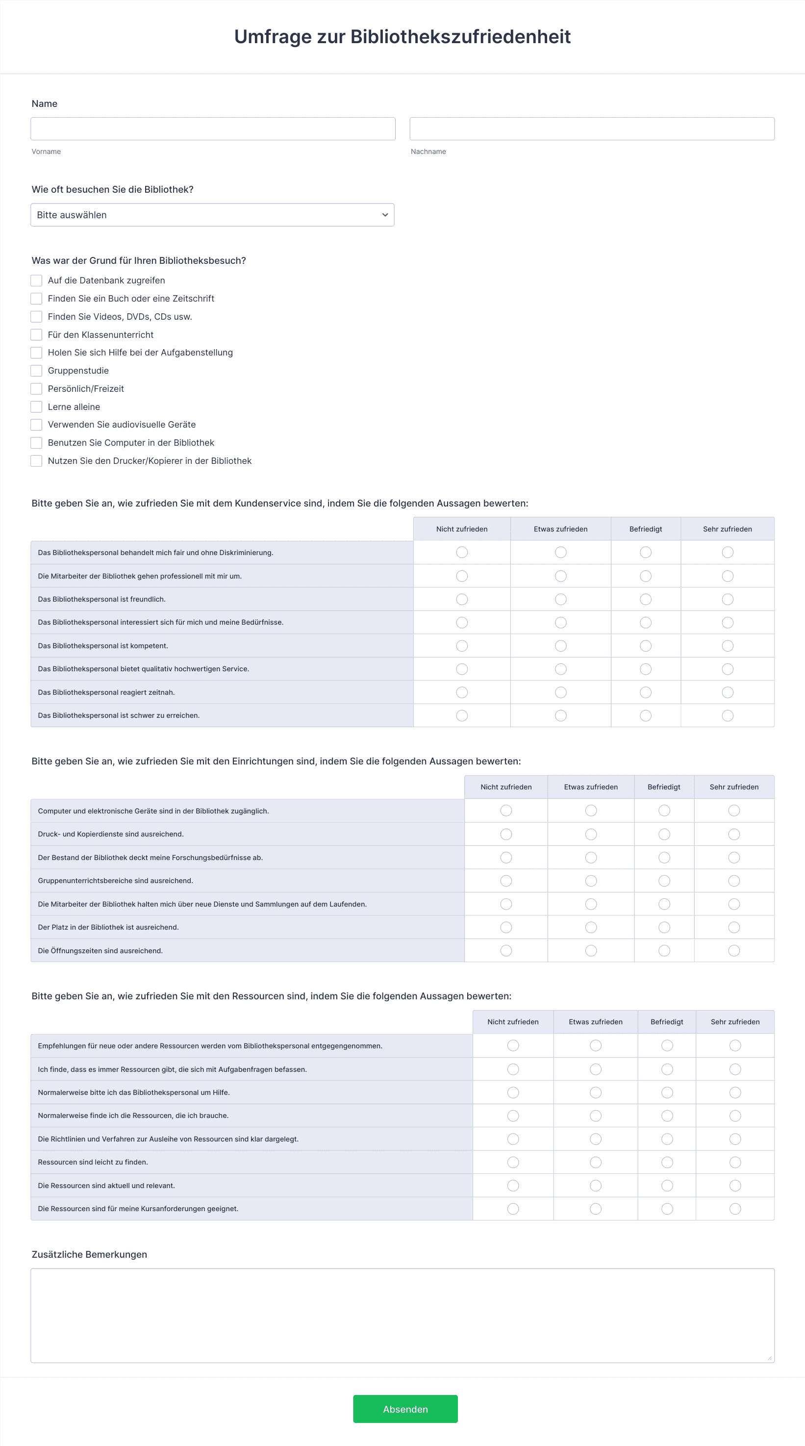 - Kundenzufriedenheitsumfragen: Sammeln Sie Feedback zu Produkten, Dienstleistungen oder Erfahrungen, um das Angebot zu verbessern.