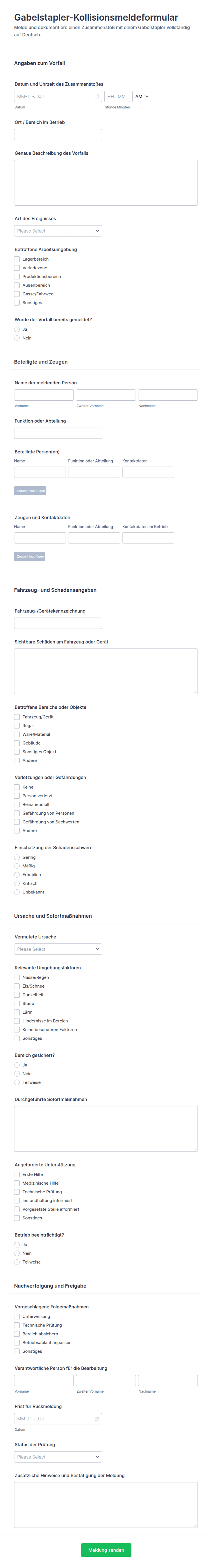 Unfallsbericht Für Gabelstapler – Formular