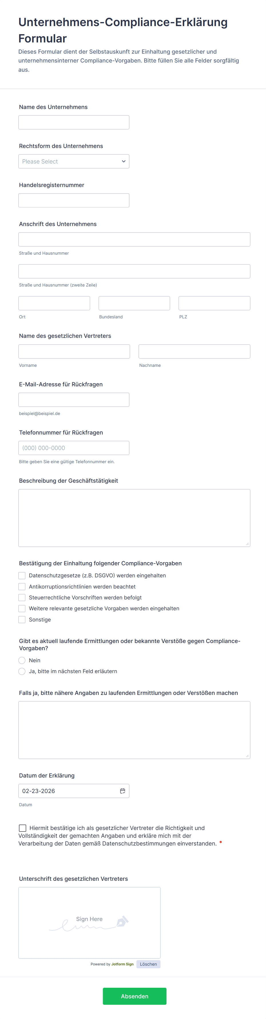 - Rechtliche Erklärungen: Erfordern detaillierte Bedingungen, Einverständnisfelder und E-Signatur-Felder.