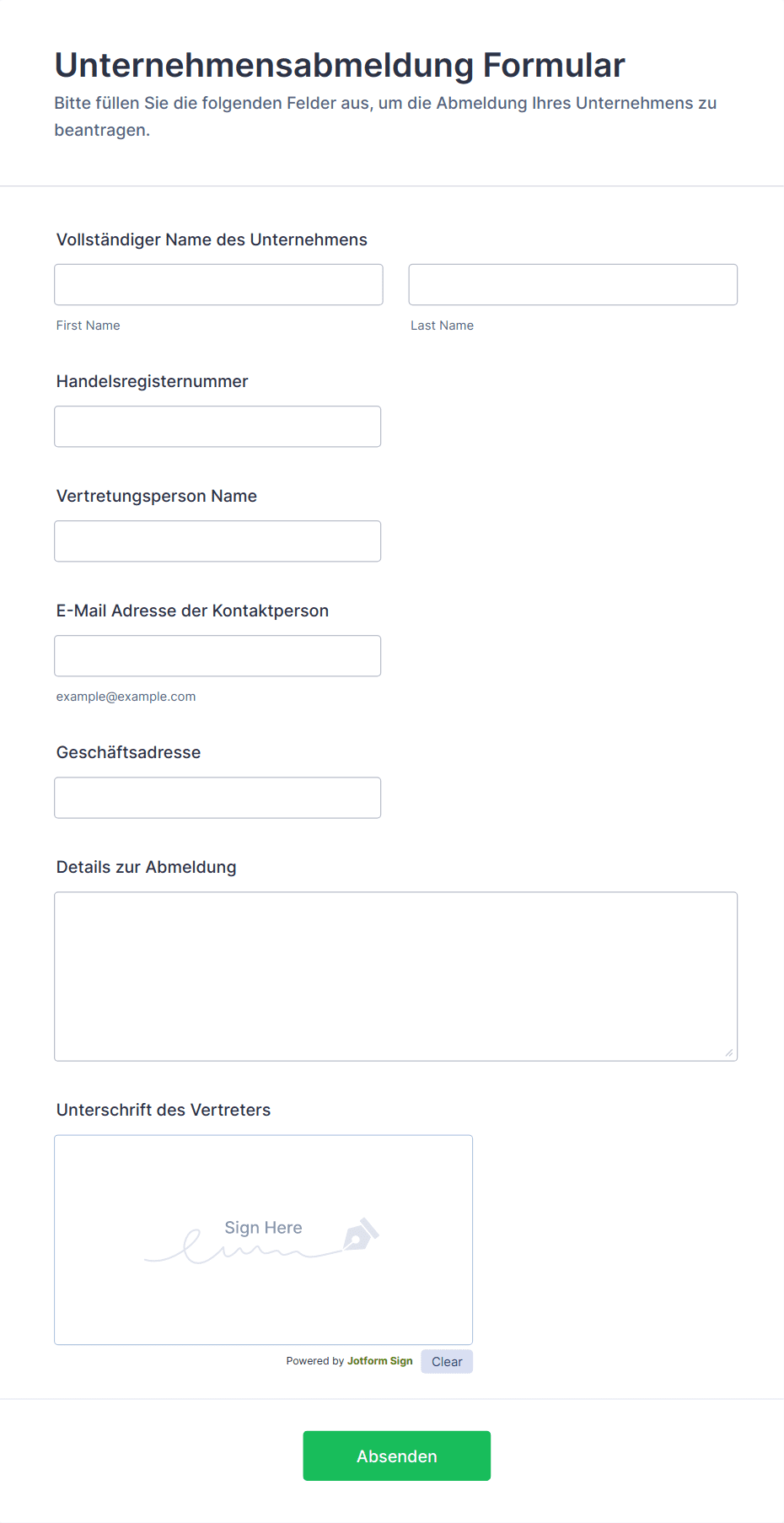 Unternehmensabmeldung Formular